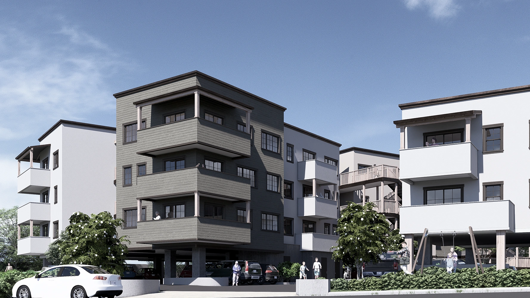 This multi-family development in the City of Goleta, California, is conceived as a thoughtfully scaled residential community that balances density, environmental stewardship, and neighborhood compatibility. The project consists of 75 residential units of varied types and sizes, organized within a series of articulated building volumes that break down the overall mass and establish a pedestrian-friendly streetscape. The architecture emphasizes clean lines, layered façades, and a restrained palette of light and dark finishes. The vertical and horizontal articulations are designed carefully to create depth, shadows, and visual interest while providing generous private outdoor spaces for residents.