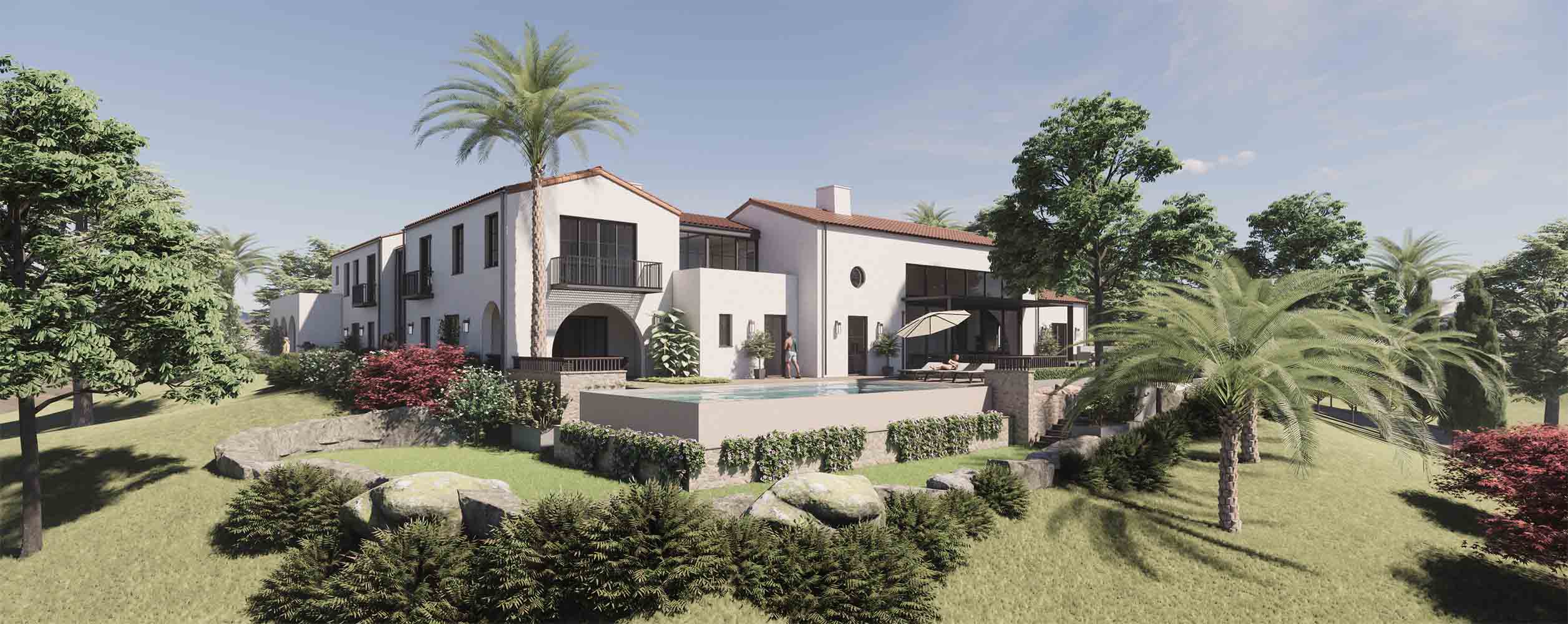 This Montecito residence reinterprets traditional Spanish Colonial architecture through a refined and contemporary lens, grounding the home in its Santa Barbara context while responding to modern living. The massing is composed of interconnected volumes organized around a central courtyard, creating a clear sense of arrival and a strong indoor-outdoor connection. White plaster walls, clay tile roofs, deep arches, and carefully proportioned openings establish a familiar architectural language, while clean detailing, restrained ornamentation, and expansive glazing give the home a lighter, more current expression.