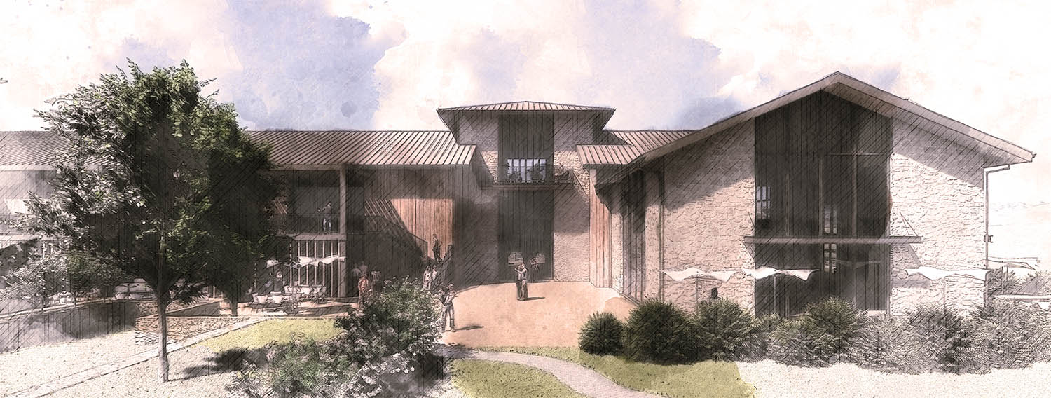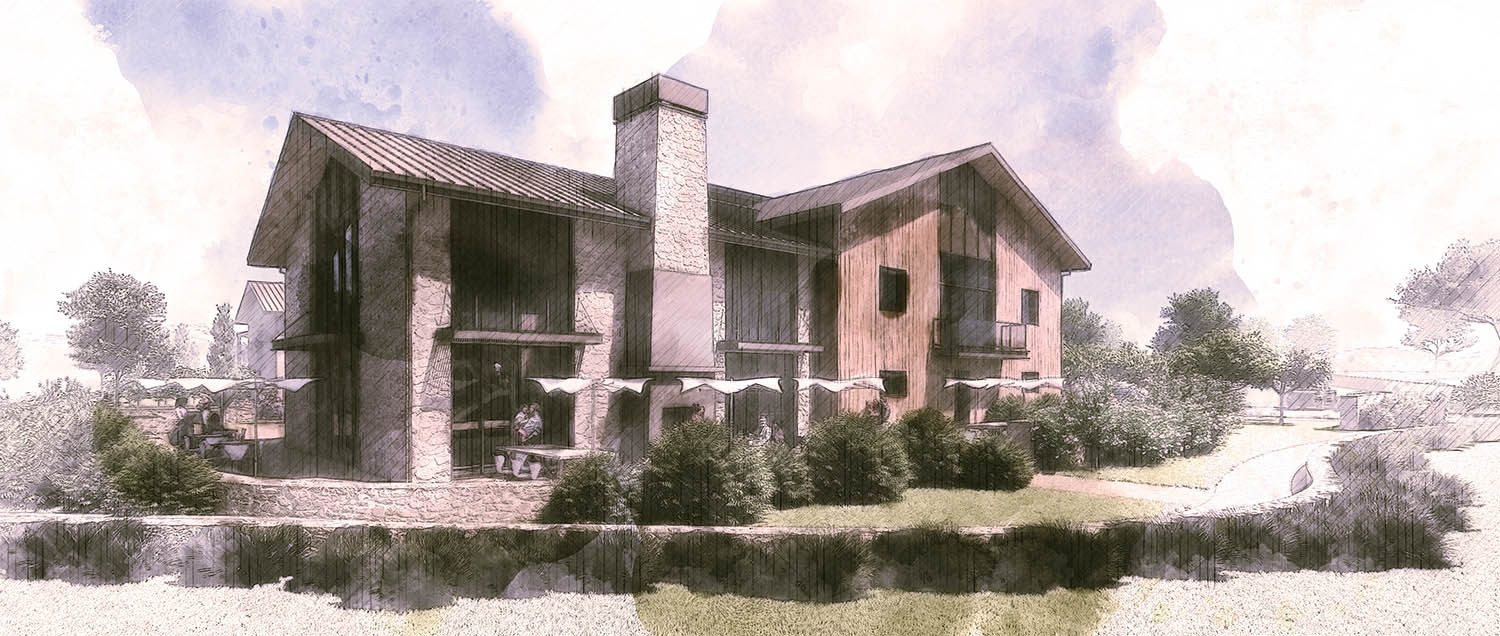 Nestled within the rolling landscape of the Santa Ynez Valley, this winery was envisioned as a contemporary agrarian estate that feels deeply rooted in its surroundings. The architecture draws inspiration from traditional agricultural forms, expressed through a series of gabled volumes, natural materials, and sheltered outdoor gathering spaces that respond to the rhythm of the vineyard and the openness of the valley. Positioned to sit comfortably within the terrain, the composition creates a welcoming presence while maintaining a quiet, timeless character appropriate to the rural setting.