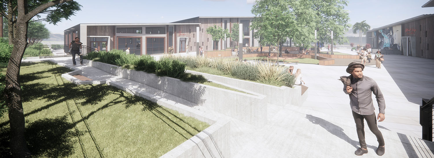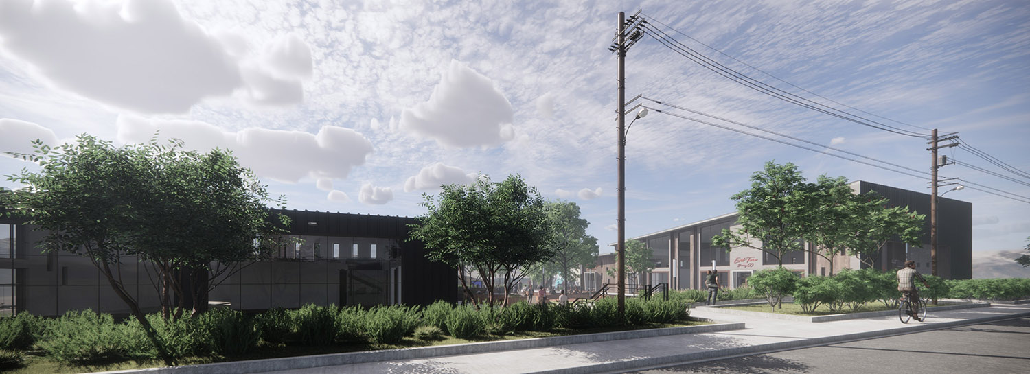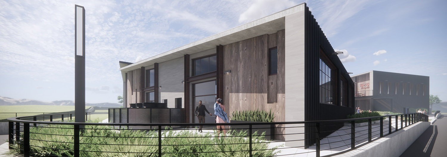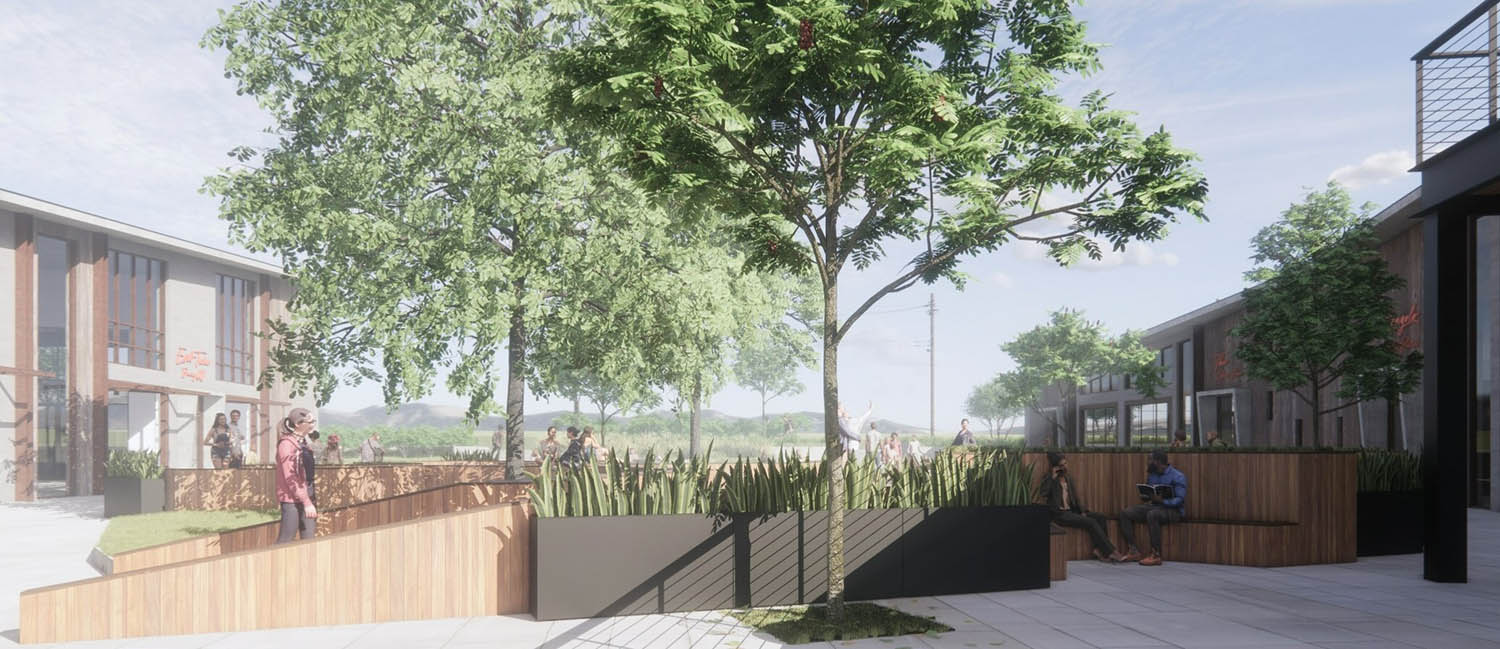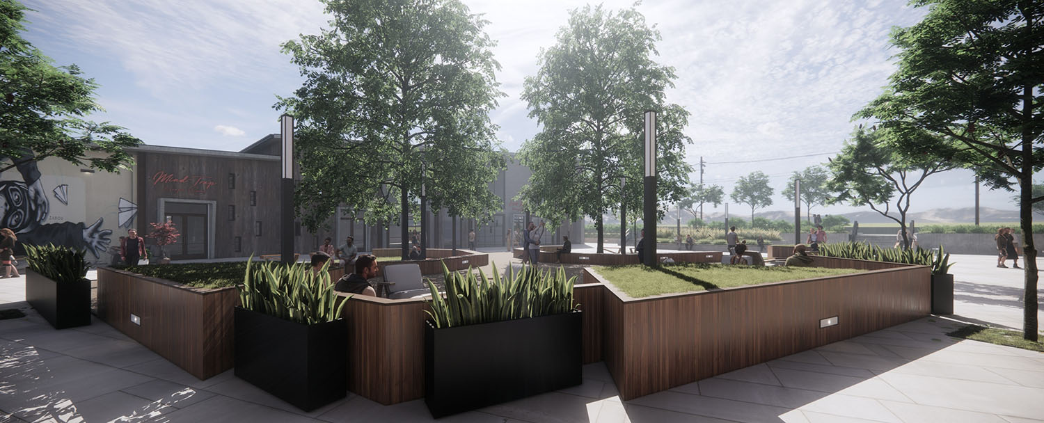 The Edge is a mixed-use development conceived as a contemporary social and commercial hub in Atascadero, California. Organized into two primary buildings, the project is intentionally designed around two large, existing oak trees that anchor the site and shape the overall layout. A central courtyard is carved between the buildings, preserving these mature trees while creating a welcoming outdoor room with seating, planters, and pedestrian pathways that serve as the heart of the development.